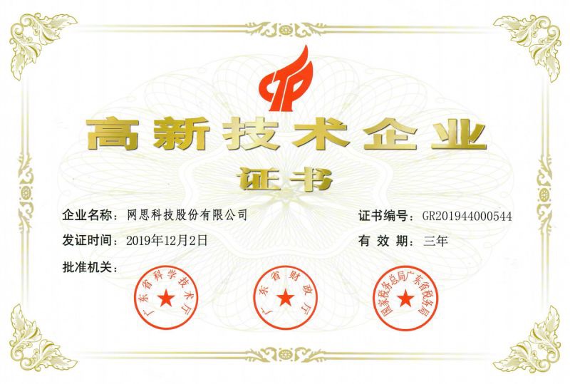 网思科技凭借雄厚的技术实力成功获得CMMI5、CCRC、6个ISO标准认证等资质,并被授予国家专精特新小巨人企业、国家高新技术企业、广东省专精特新中小企业和广州未来独角兽创新企业等多项政府和行业的重要荣誉。